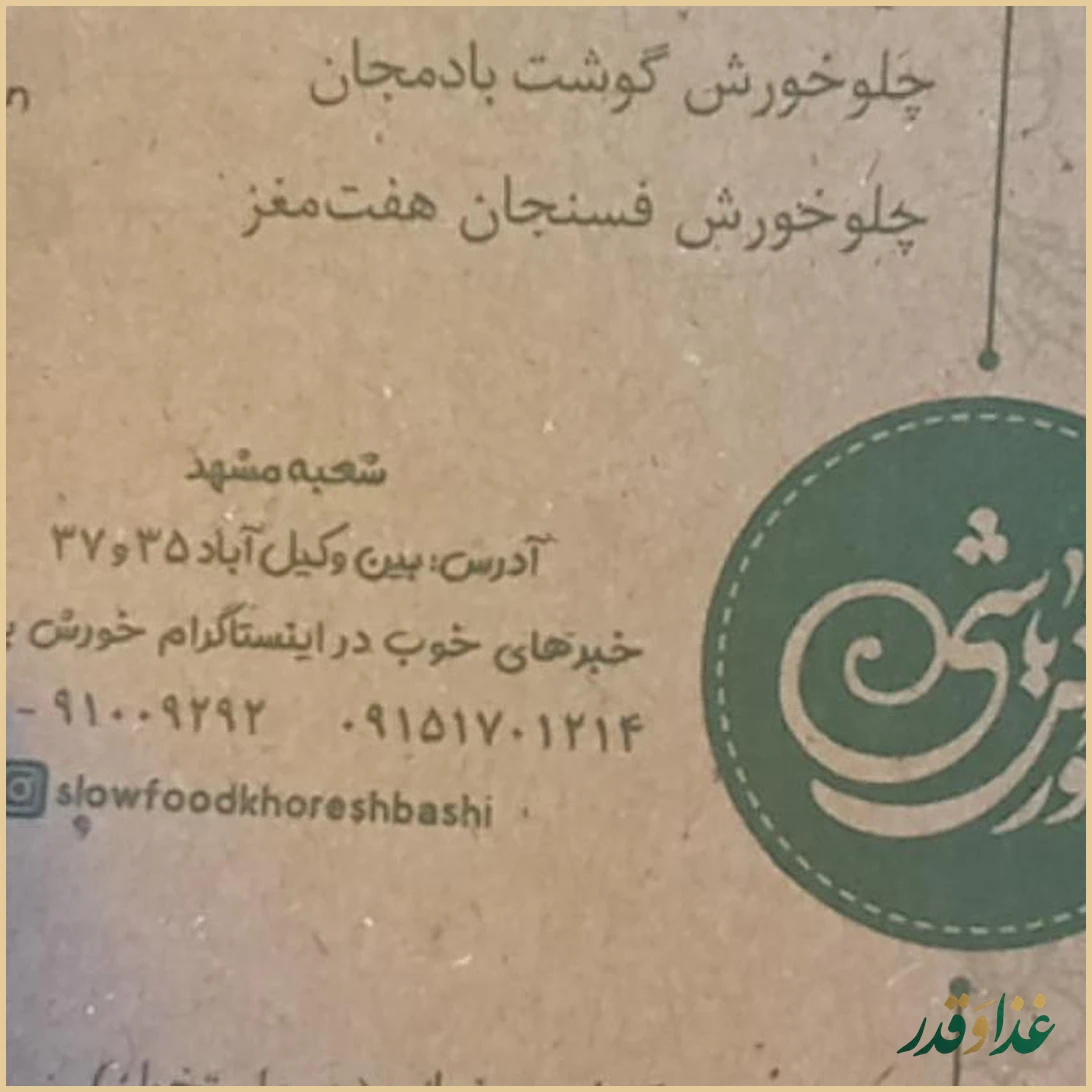 اسلو فود خورش باشی در محله دانشجو مشهد و کنارگذر وکیلآباد قرار دارد و بیشتر به خاطر کیفیت خوب غذا و برخورد محترمانه پرسنل شناخته میشود. در نظر بسیاری از مهمانها، برنج درجه یک و طعم کلی غذاها، بهخصوص مرغ سرخشده، از نقاط درخشان این رستوران است. با این حال، بعضی مشتریان درباره حجم برنج در برخی سفارشها و میزان روغن در غذاهایی مثل مرغ سوخاری یا سرخشده نکاتی را مطرح کردهاند. اگر به دنبال یک رستوران با فضای آبرومند و پرسنل خوشبرخورد هستید، خورش باشی میتواند گزینهای قابل توجه در این محدوده باشد.