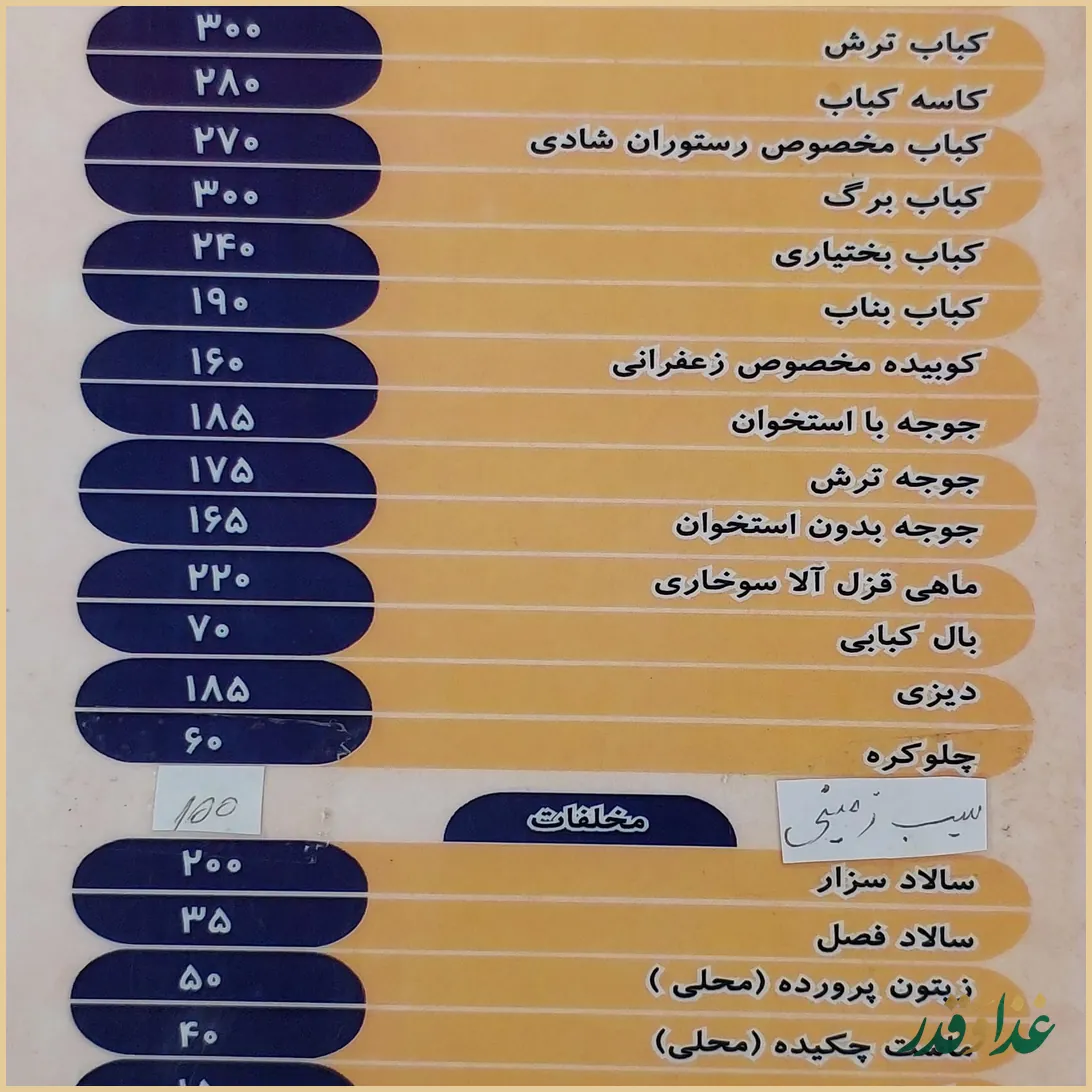 کیفیت غذا در باغ رستوران شادی چگونه است؟