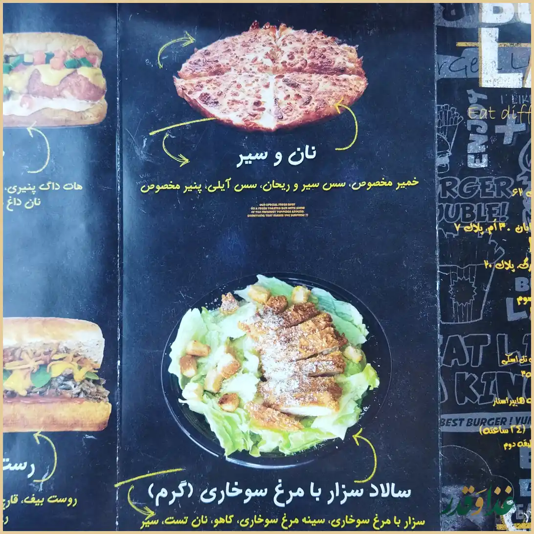 طبق نظر کاربران، پیتزا چهار فصل، برگر اسموکی، جوسی برگر، سیبزمینی سرخکرده با ادویه مخصوص، پاستا و قارچ سوخاری از آیتمهایی هستند که بیشتر از آنها تعریف شده است. اگر برای بار اول میروید، امتحان این موارد انتخابهای مطمئنتری به نظر میرسد.
