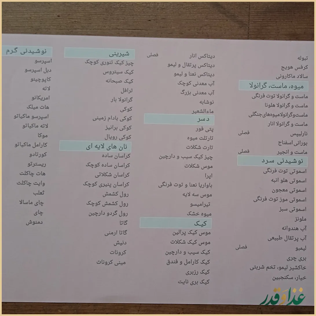 کدام آیتمهای منو بیشتر پیشنهاد میشوند؟