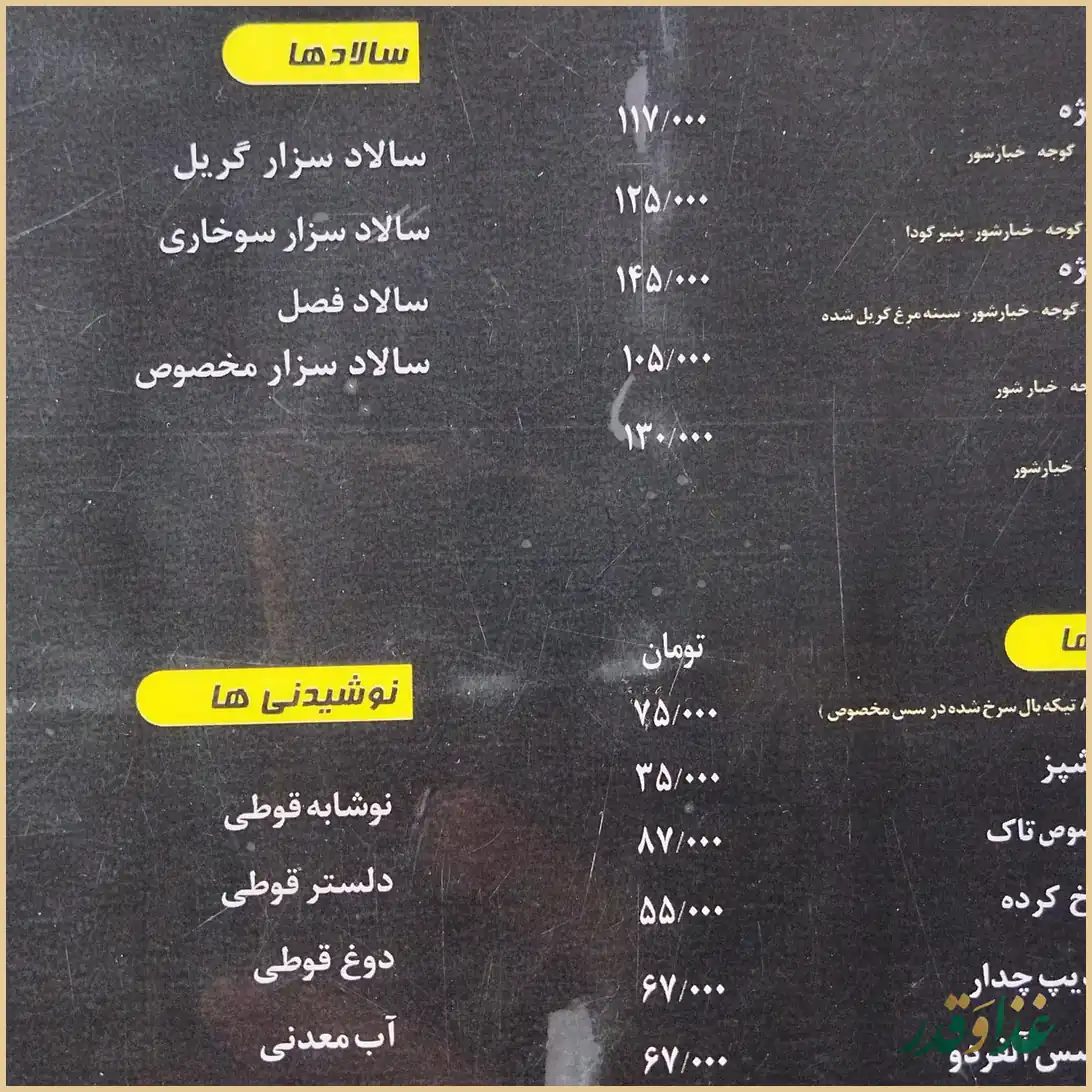 بخش قابلتوجهی از مشتریان کیفیت غذا را «عالی» و «بشدت بالا» توصیف کردهاند و مخصوصاً کبابها، غذاهای دریایی و فرنگی و پیتزاها را قابل قبول تا بسیار خوب دانستهاند. در عین حال، چند نظر منفی هم وجود دارد که از خام بودن جوجه، سرد رسیدن غذا و بیکیفیت بودن برخی سفارشها صحبت کردهاند. بهطور کلی میتوان گفت اگرچه بسیاری از مهمانان راضی بودهاند، اما تجربه کیفیت ممکن است بین روزها و سفارشهای مختلف کمی متغیر باشد.