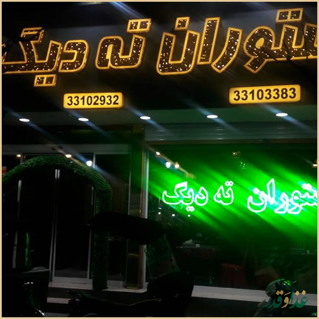 رستوران ته دیگ در محله آهنگ شرقی تهران و در بلوار زمزم قرار دارد و روی غذاهای ایرانی تمرکز دارد. بر اساس نظر بسیاری از مشتریها، کیفیت غذا در این رستوران بسیار خوب است و خیلیها از طعم و تازگی غذاها تعریف کردهاند. امکان سفارش بیرونبر و پیک هم وجود دارد و بعضیها از اینکه غذا در زمان کوتاهی به دستشان رسیده، ابراز رضایت کردهاند. در عین حال، چند نفر از کاربران از نحوه برخورد و سرویسدهی حضوری انتقاد داشتهاند که بهتر است مدیریت رستوران به آن توجه بیشتری نشان دهد.