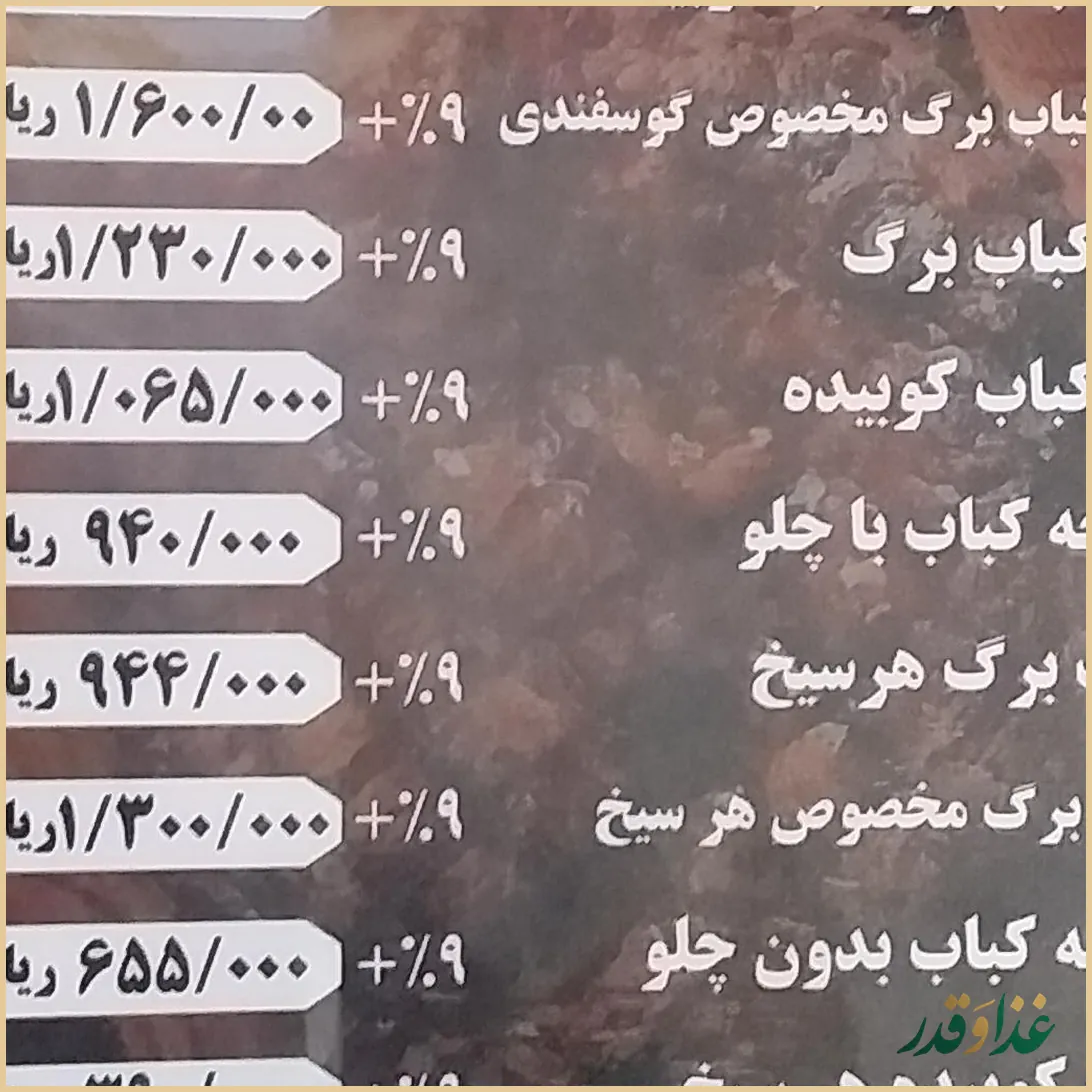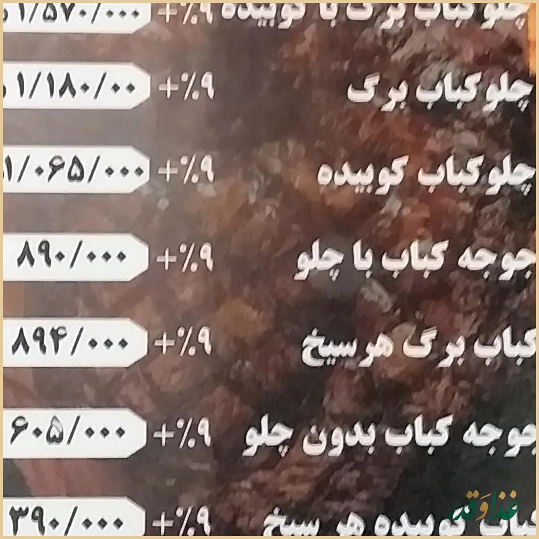 در نظرات کاربران بیشتر از «غذای این رستوران» بهصورت کلی تعریف شده و نام غذای مشخصی ذکر نشده است، اما با توجه به سبک رستورانهای قدیمی ایرانی میتوان انتظار انواع کباب و غذاهای سنتی را داشت. برای انتخاب دقیقتر، بهتر است هنگام سفارش از پرسنل درباره غذاهای پرطرفدار همان روز سؤال کنید.