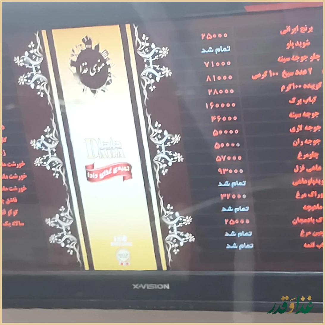 رستوران دادا در محله تالار و در آدرس «اصفهان، بوزان، خ. خواجه عمید» قرار دارد و در دسته رستورانهای ایرانی فعالیت میکند. این مجموعه هم امکان صرف غذا در محل و هم سفارش بیرونبر و ارسال با پیک را برای مشتریان فراهم کرده است. در نظرات ثبتشده، بعضی از مشتریان از کیفیت غذا و بستهبندی رضایت داشتهاند و آن را «عالی» توصیف کردهاند، اما برخی هم از کیفیت بعضی غذاها و موضوع برنج گلایه داشتهاند. در مجموع، دادا میتواند برای ساکنان اطراف یک گزینه قابل بررسی باشد، بهویژه اگر قبل از سفارش نوع برنج و غذا را دقیقتر جویا شوید.