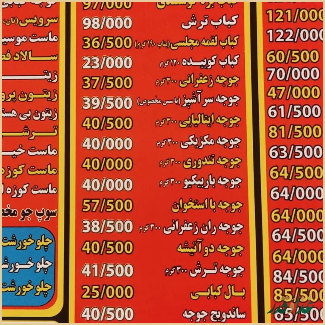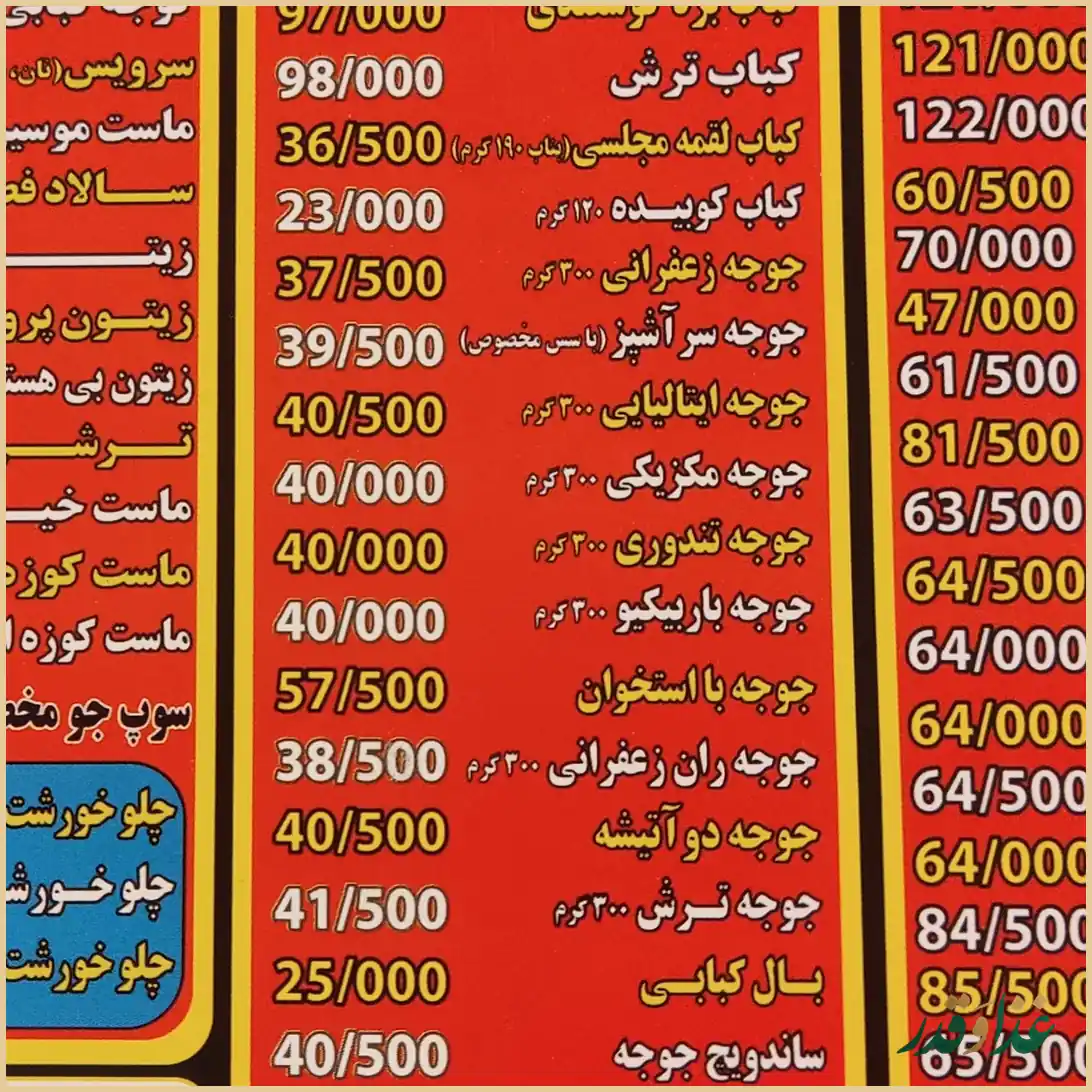 در بین نظرات، کباب کوبیده بیشترین تعریف را گرفته و بعضی مشتریان آن را بهترین گزینه منوی رستوران دانستهاند. در عوض درباره جوجه ترش و کباب چنجه، نظرهای منفیتری ثبت شده و برخی معتقدند این موارد به کیفیت سایر کبابها نمیرسد.