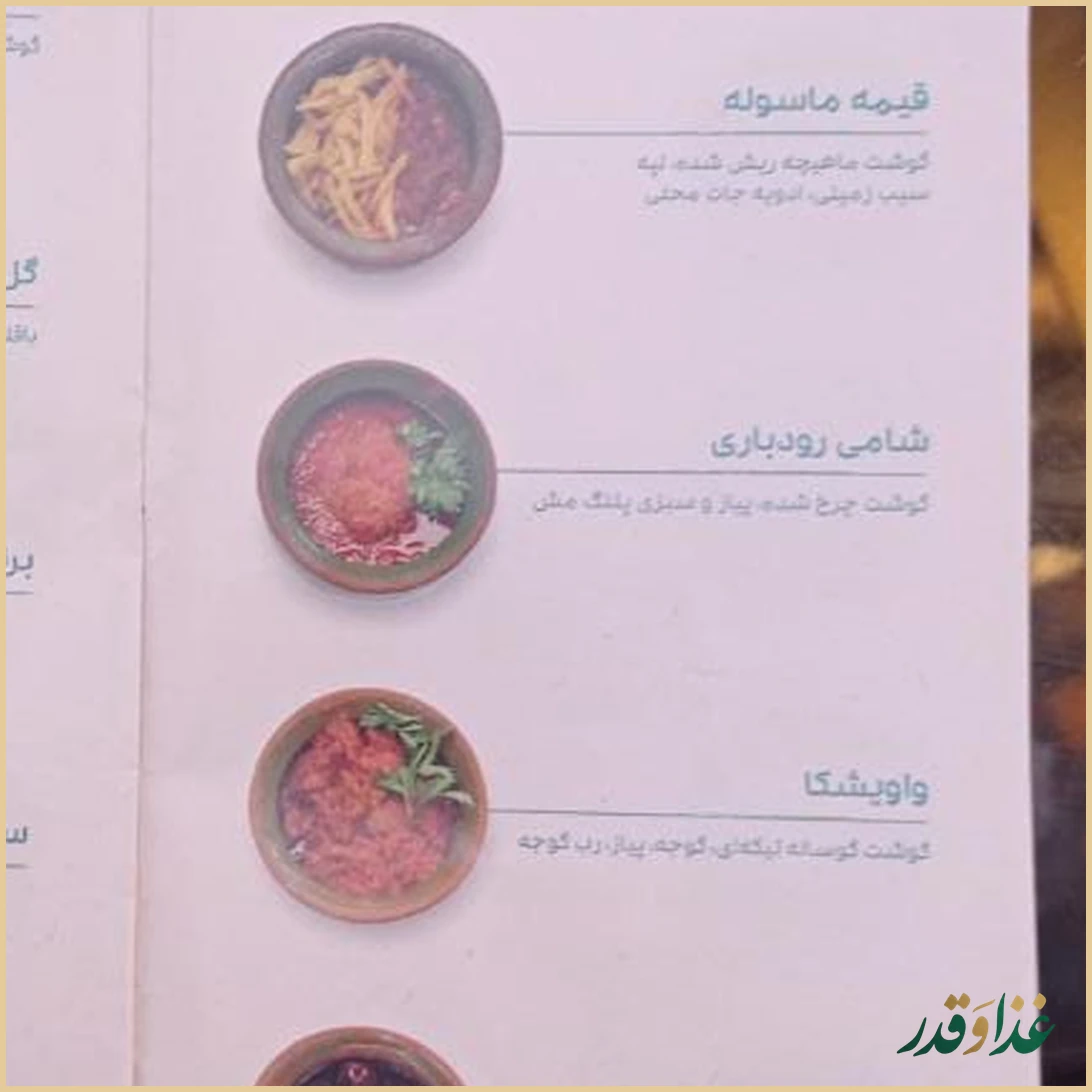 در نظرات، چند بار از قیمه ماسوله، اناربیج، فسنجان، خورش ترش واش و برخی کبابها مثل کباب ترش و چنجه تعریف شده است. همچنین بعضی مشتریان، برگر شور کولی را بهترین برگری که خوردهاند دانستهاند. اگر برای اولین بار میروید، امتحان یکی از خورشتهای محلی کنار یک غذای کبابی انتخاب مطمئنی است.