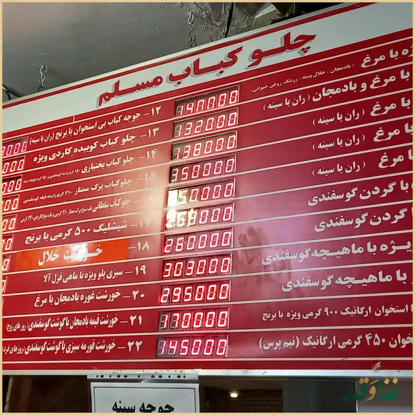 رستوران مسلم در قلب محله بازار تهران و حوالی سبزهمیدان قرار دارد و سالهاست بهعنوان یکی از شلوغترین و شناختهشدهترین رستورانهای این محدوده شناخته میشود. تمرکز اصلی رستوران روی غذاهای ایرانی است و تهچین مخصوص مرغ از محبوبترین و پرطرفدارترین گزینههای منو بهشمار میآید. بسیاری از مشتریان از حجم مناسب غذا و رفتار محترمانه پرسنل رضایت داشتهاند و اینجا را انتخاب ثابت خود هنگام خرید در بازار میدانند. در عین حال، بعضی نظرات به معمولی بودن بخشی از غذاها و بالا بودن قیمتها اشاره کردهاند و همین باعث شده تجربهها کمی متفاوت باشد.