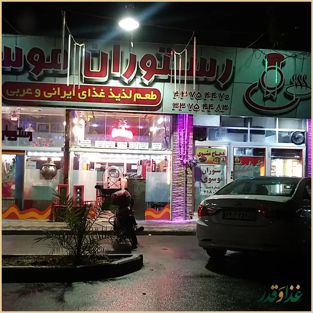 رستوران موسوی در محله دولتآباد تهران و داخل بازارچه هجرت قرار دارد و بهخاطر غذاهای عراقی و عربی مخصوصاً قیمه نجفی معروف شده است. اینجا یک رستوران خانوادگی است که هم غذاهای عربی و عراقی و هم چند مدل غذای ایرانی سرو میکند و بیشتر مشتریهایش از همان منطقه و خانوادههای عربزبان هستند. بر اساس نظر مشتریها، کیفیت غذاها بالاست، طعمشان حالوهوای غذای خانگی دارد و نسبت به کیفیت، قیمتها هم مناسب ارزیابی شده است. محیط رستوران ساده اما تمیز است و برخورد پرسنل محترمانه و صمیمی توصیف شده که برای یک دورهمی خانوادگی خودمانی در جنوب تهران گزینه مناسبی بهشمار میآید.