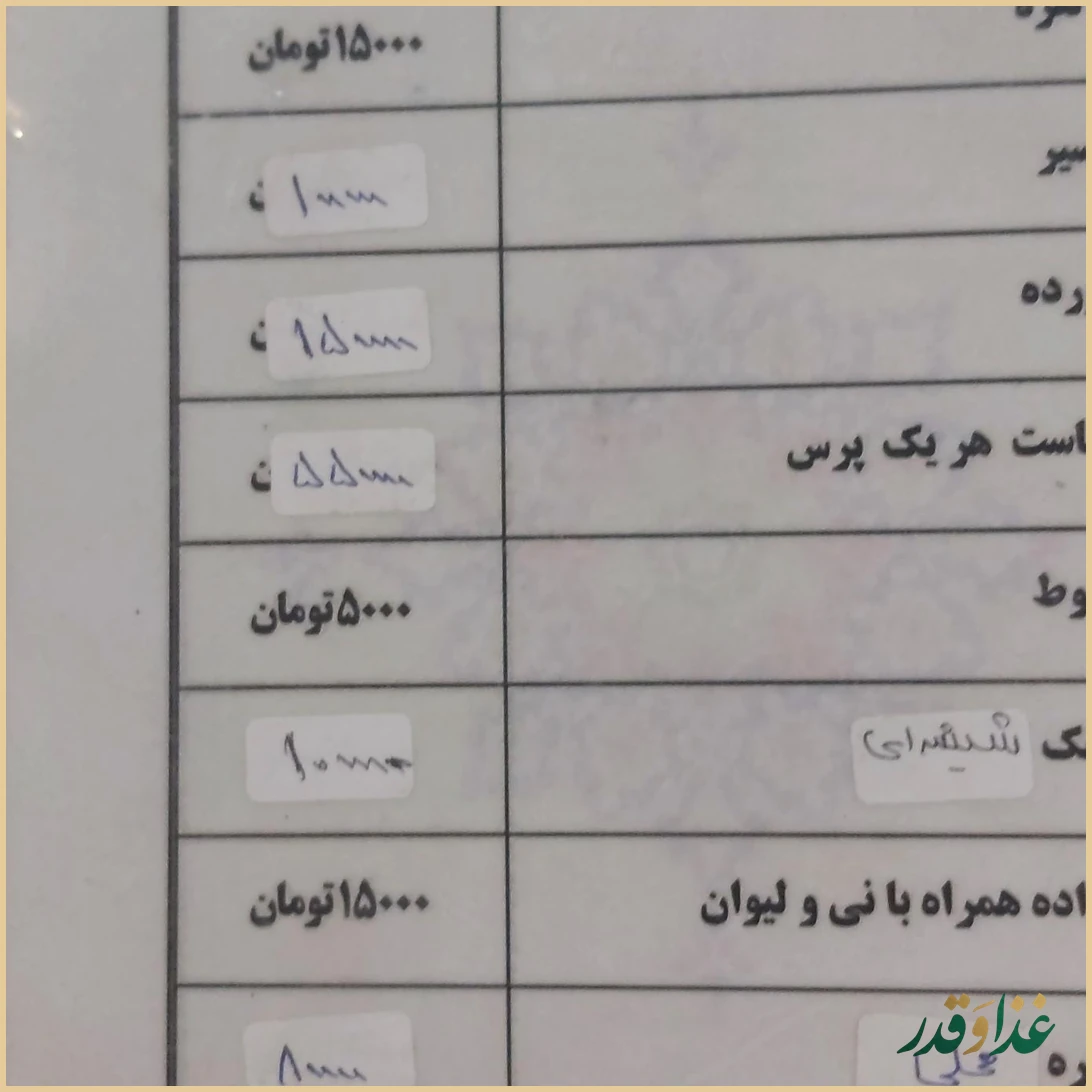 در نظرات موجود اطلاعات دقیقی درباره منو و سطح قیمتها ذکر نشده است؛ بنابراین برای آگاهی از قیمتها و نوع غذاها بهتر است قبل از مراجعه، تلفنی یا از طریق صفحات مجازی احتمالی رستوران استعلام بگیرید.