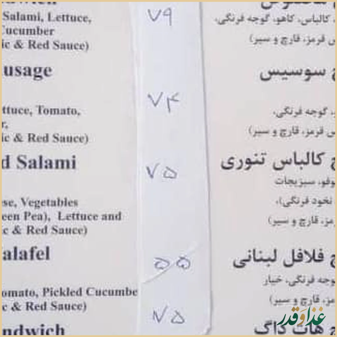 در مجموع رنج قیمت در بازه متوسط توصیف شده، اما بعضی مشتریان از بالا رفتن قیمتها و کوچک بودن برخی ساندویچها نسبت به قیمت گلایه کردهاند؛ بنابراین اگر با بودجه محدود میروید، بهتر است قبل از سفارش، قیمتها را دقیق بررسی کنید.