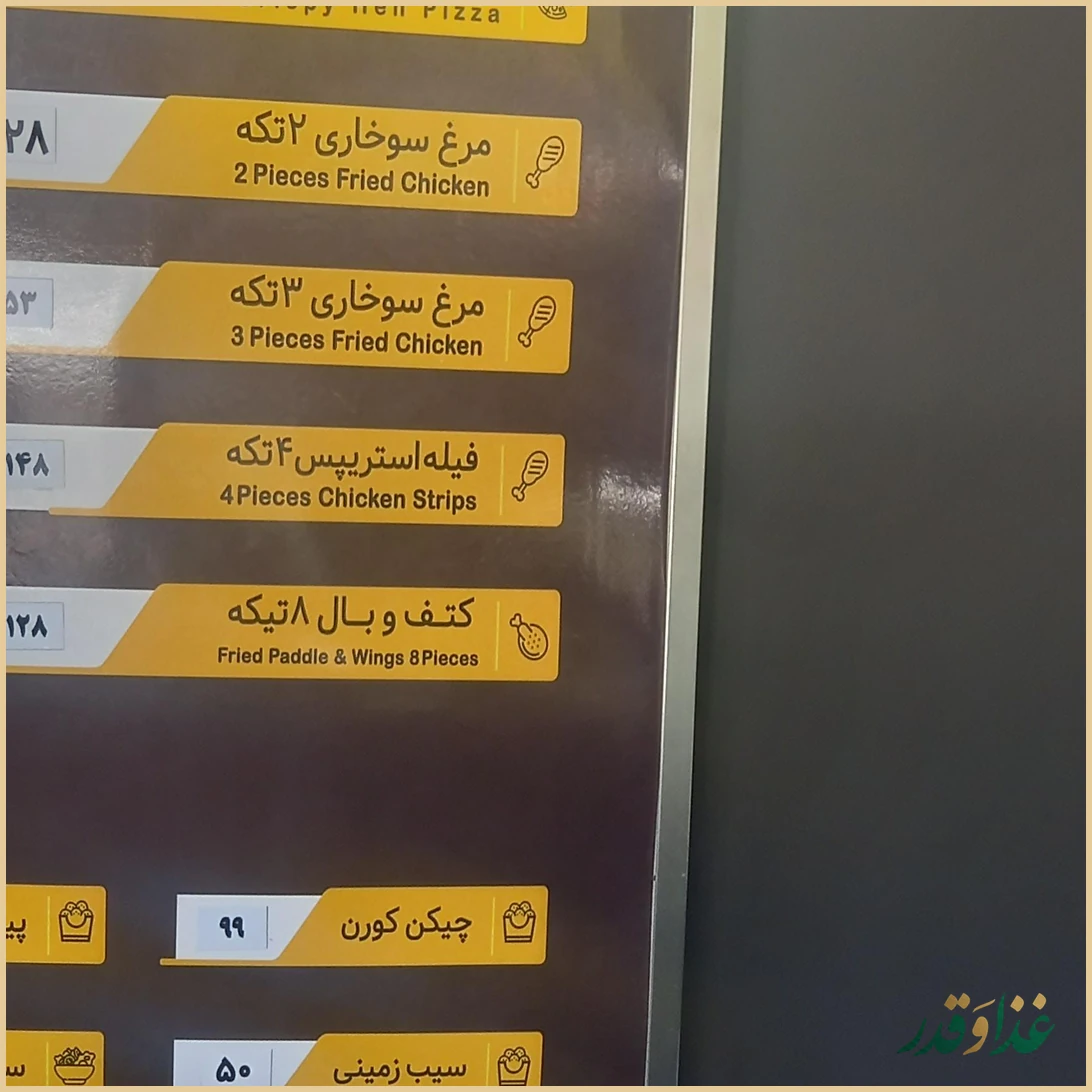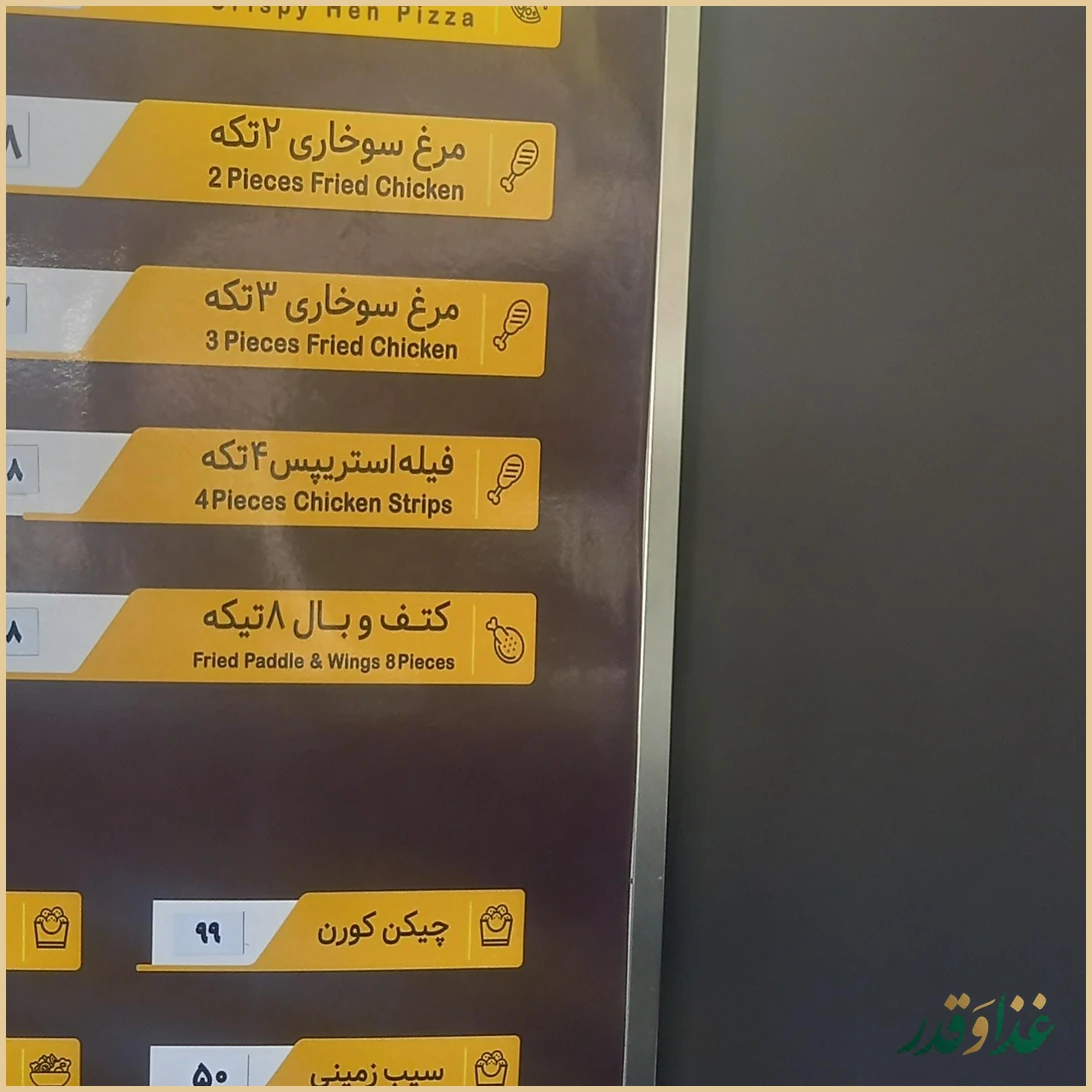 برخی مشتریها از ترد و خوشمزه بودن مرغ سوخاری بسیار راضی بودهاند، اما یک نظر هم بهشدت از کیفیت ناراضی بوده و آن را بد توصیف کرده است؛ بنابراین کیفیت تجربهها متفاوت بوده و بهتر است با یک بار سفارش، خودتان امتحان کنید.