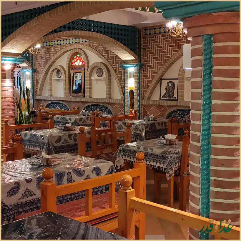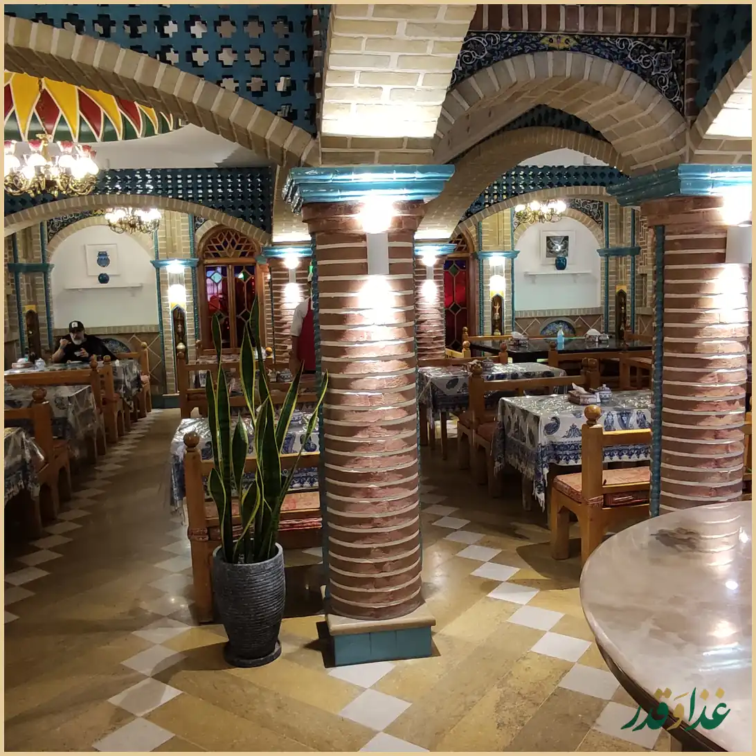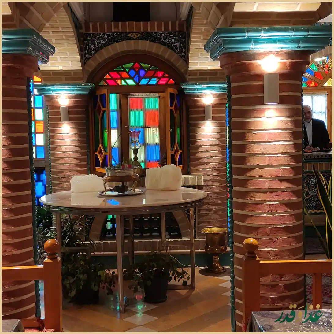 ورودی و فضای داخلی با الهام از خانههای قدیمی ایرانی طراحی شده و دکور و تزئینات سنتی و خلاقانهای دارد. همچنین ظروف پذیرایی و سرو غذا از نگاه مهمانان بسیار زیبا و چشمنواز بوده و به حس سنتی و نوستالژیک فضا کمک میکند.