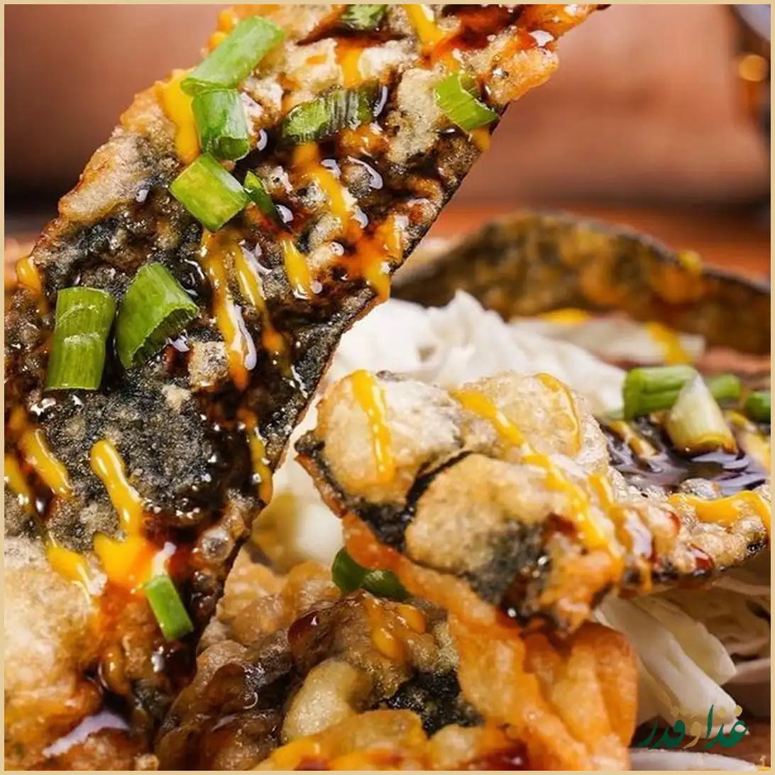 ۴ تکه جلبک سوخاری شده، سس مخصوص، کنجد، پودر تمپورا