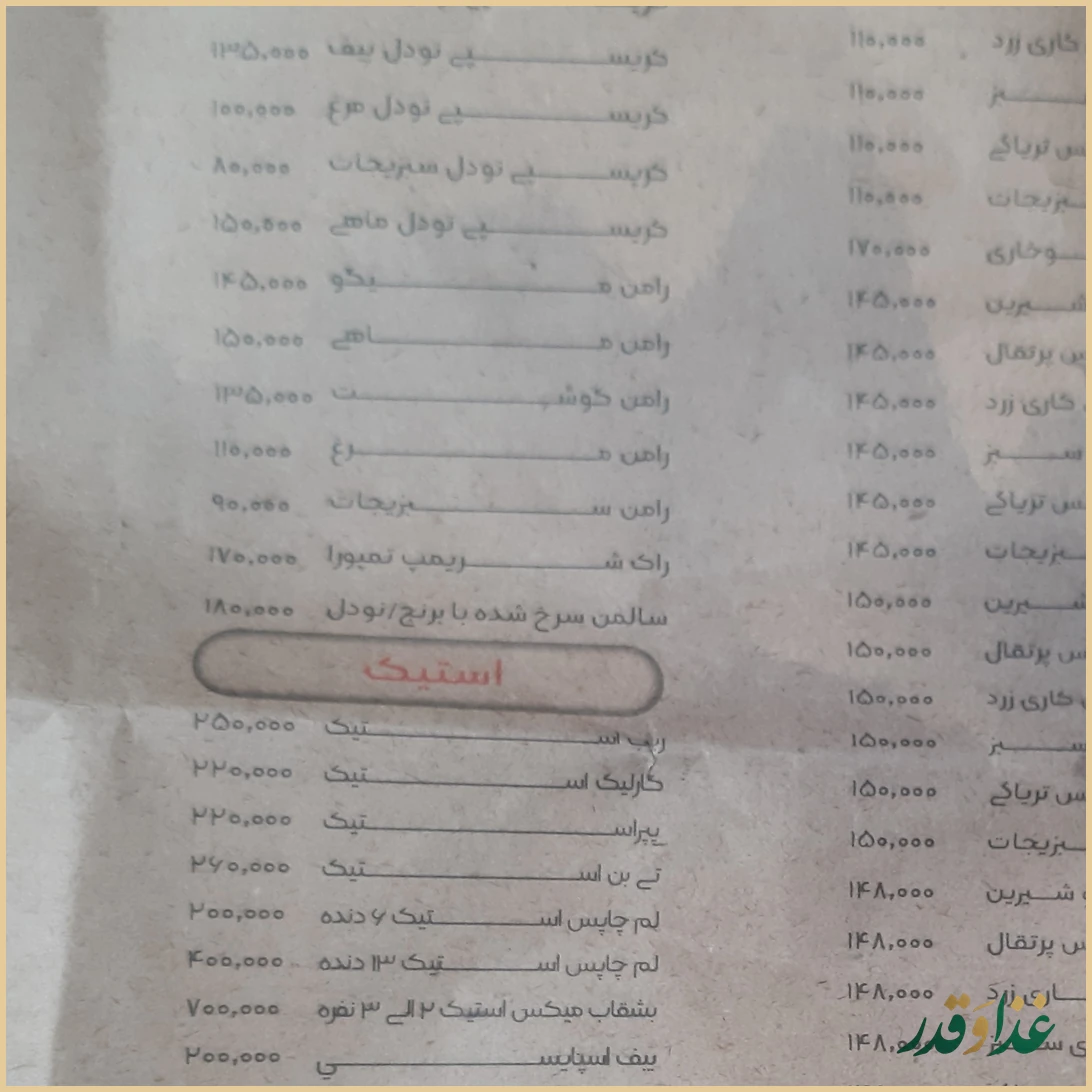 در نظرات، بخشی از مشتریان از غذاها بسیار راضی بوده و آن را «عالی» توصیف کردهاند، اما برخی دیگر معتقدند نسبت به گذشته کیفیت پایین آمده است؛ بنابراین کیفیت تجربهها کمی ناپایدار گزارش شده و بهتر است با انتظار متوسط به بالا به رستوران بروید.