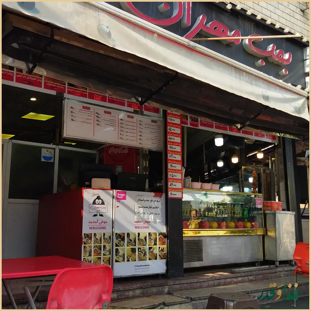 فست فود بمب مهران در محله کوهک تهران و در محدوده خیابان هنگام و فرجام قرار دارد و بیشتر بهصورت بیرونبر و با امکان ارسال پیک فعالیت میکند. این مجموعه با تمرکز روی سینیهای بزرگ و حجیم، بیشتر برای دورهمیهای دوستانه یا خانوادگی و سفارش گروهی شناخته میشود. وجود فضای باز و امکان استعمال سیگار، آن را برای برخی مشتریان به گزینهای راحتتر تبدیل کرده است. با این حال در نظرات مشتریان، درباره کیفیت غذا و ثبات حجم وعدهها، نظرهای متفاوت و متناقض دیده میشود که بهتر است قبل از سفارش به آن توجه شود.