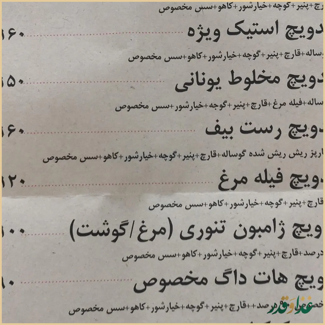 کاربران از قیمت‌ها با عباراتی مثل «خوبه» و حتی «بینظیره» یاد کرده‌اند که نشان می‌دهد نسبت قیمت به کیفیت، منصفانه و رضایت‌بخش ارزیابی شده است. برای یک فست‌فود با محیط شیک، این سطح قیمت می‌تواند برای بسیاری از مشتریان مقرون‌به‌صرفه محسوب شود.