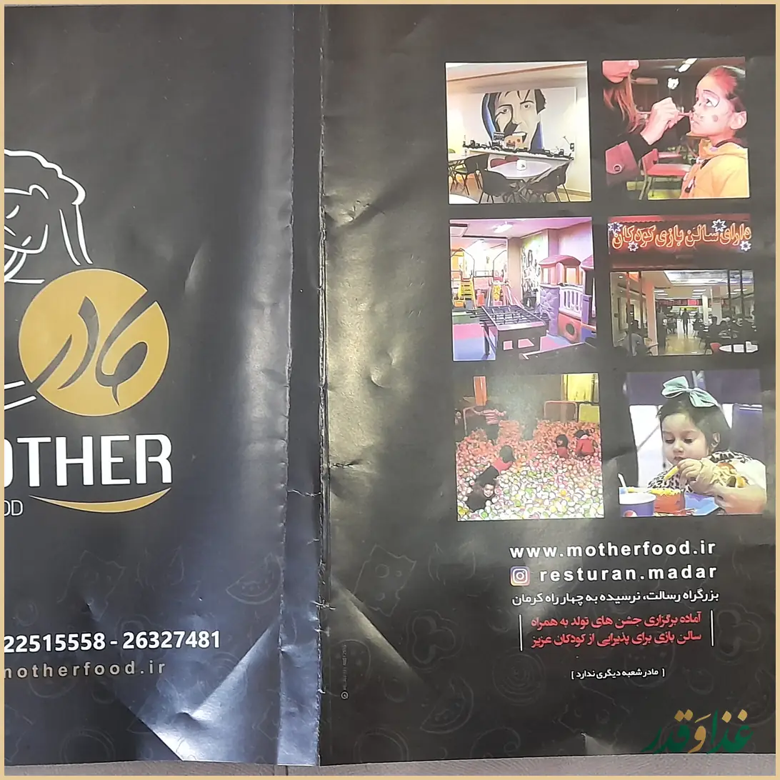 فست فود مادر در محله کرمان تهران و در بلوار رسالت قرار دارد و از قدیم بین اهالی منطقه شناختهشده است. این مجموعه بیشتر بهخاطر پیتزا و پاستا و فضای مناسب خانوادهها و بچهها مورد توجه قرار گرفته است. امکاناتی مثل صندلی کودک، وسایل بازی برای سرگرمی بچهها و حتی سالن گریم برای جشن تولد باعث شده برای خانوادهها گزینه جذابی باشد. همچنین وجود پیک و ارسال رایگان در محدوده، سفارش از خانه را راحتتر کرده است. در عین حال، در نظرات مشتریان هم تعریفهای جدی از کیفیت و بهداشت و هم گلایههایی از قیمت و کیفیت بعضی غذاها دیده میشود.