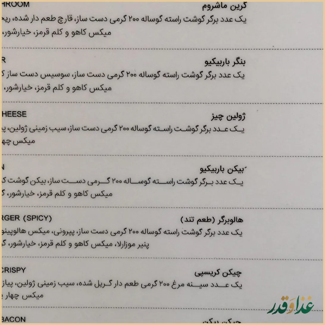 حجم و قیمت غذاها در فست فود پیله چگونه است؟