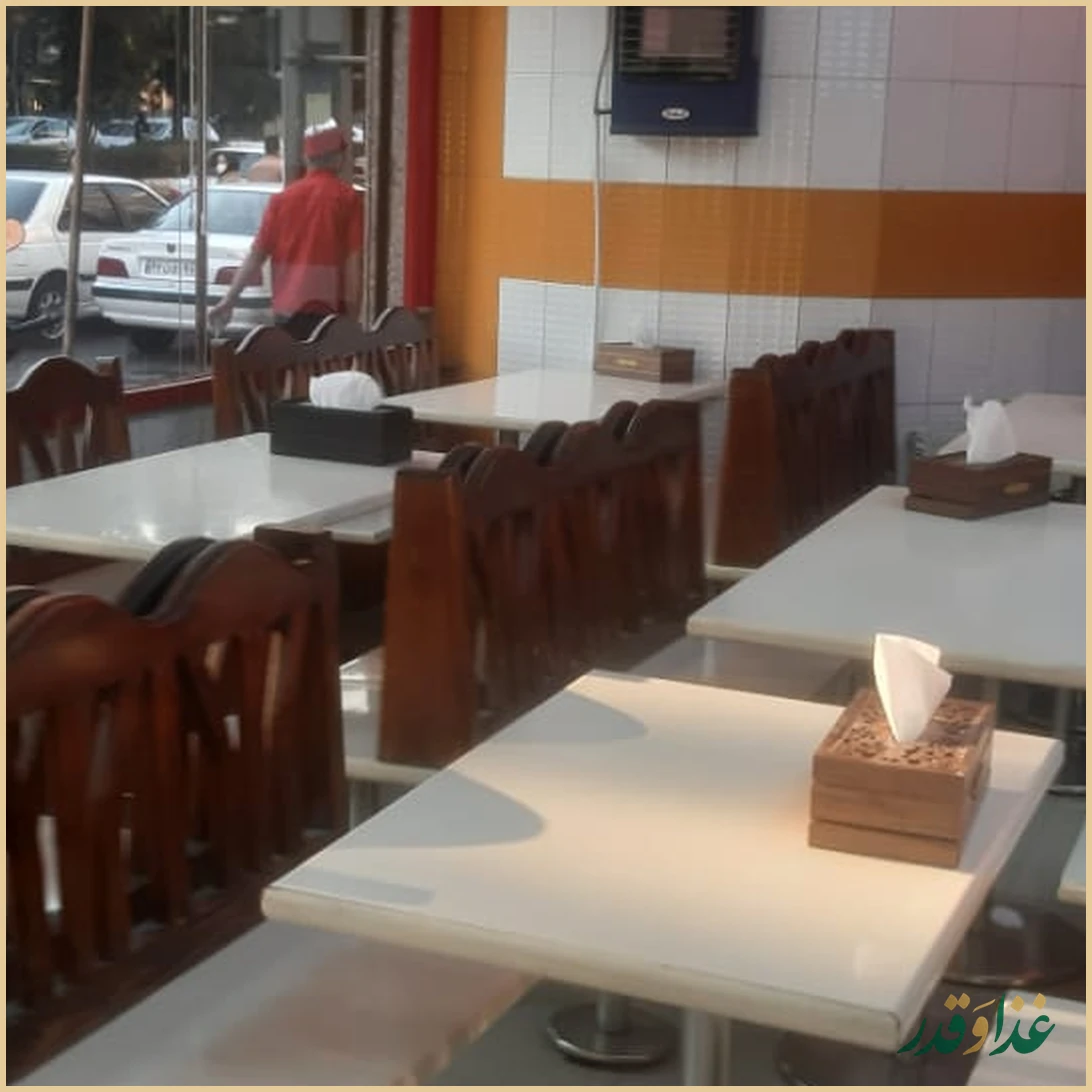 رستوران فضای نشستن داخلی دارد اما طبق نظر بعضی از کاربران، محیط نسبتاً کوچک است و فاصله میز و صندلیها کم است. اگر دنبال یک دورهمی طولانی و خلوت هستید شاید فضا کمی شلوغ و نزدیک به نظر برسد، اما برای یک وعده غذای سریع خانوادگی یا دوستانه میتواند مناسب باشد.