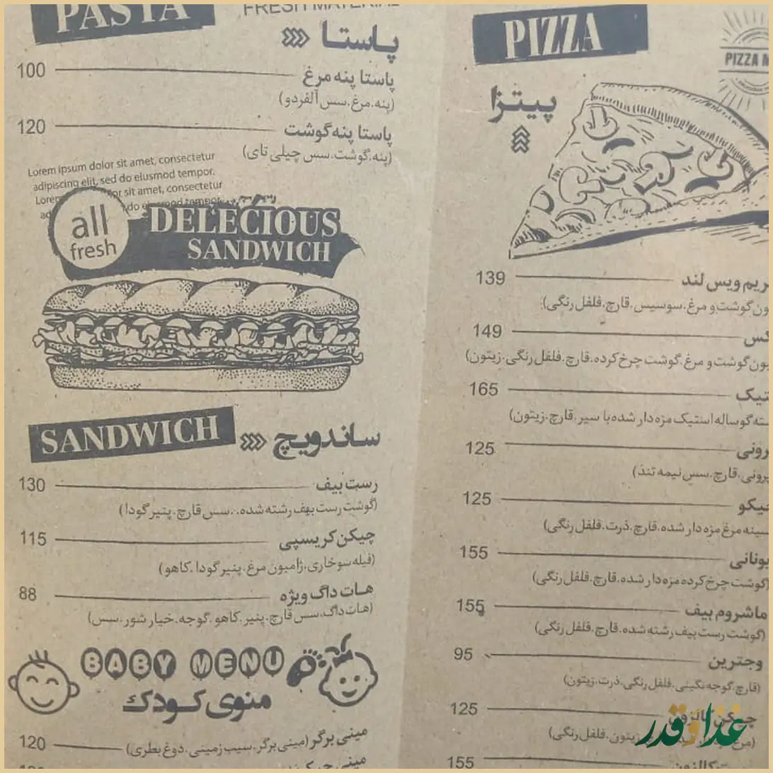 در بین نظرات، از پاستاها (بهویژه پاستای خوشمزه) و برخی پیتزاها بیشتر تعریف شده و گفته شده که در منو تقریباً هرچه بخواهید پیدا میشود؛ پیتزاها معمولی اما پاستا برای بعضی مهمانها بسیار دلچسب بوده است.