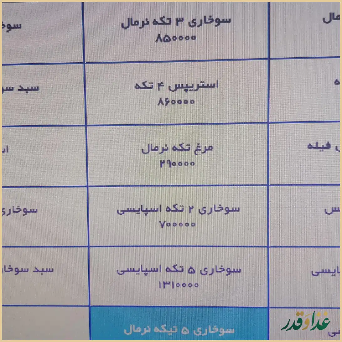 - قیمت برخی آیتمها