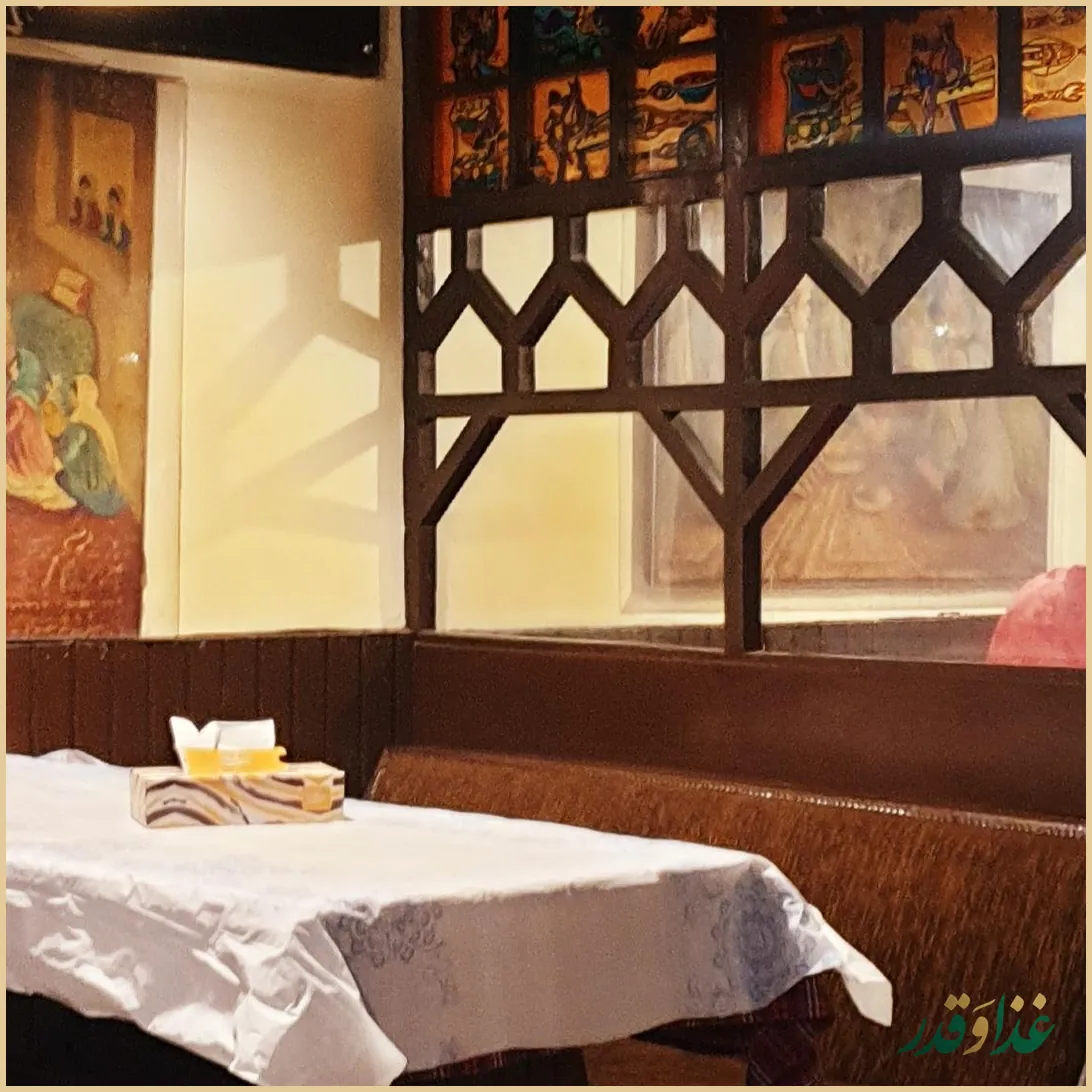 فضا کلاسیک، قدیمی و برای بسیاری از مشتریان نوستالژیک است؛ میزها با حالت غرفهمانند و دکور ویژهای طراحی شدهاند و کسانی که با این فضا خاطره دارند، این حالوهوا را یکی از مهمترین جذابیتهای رستوران میدانند.