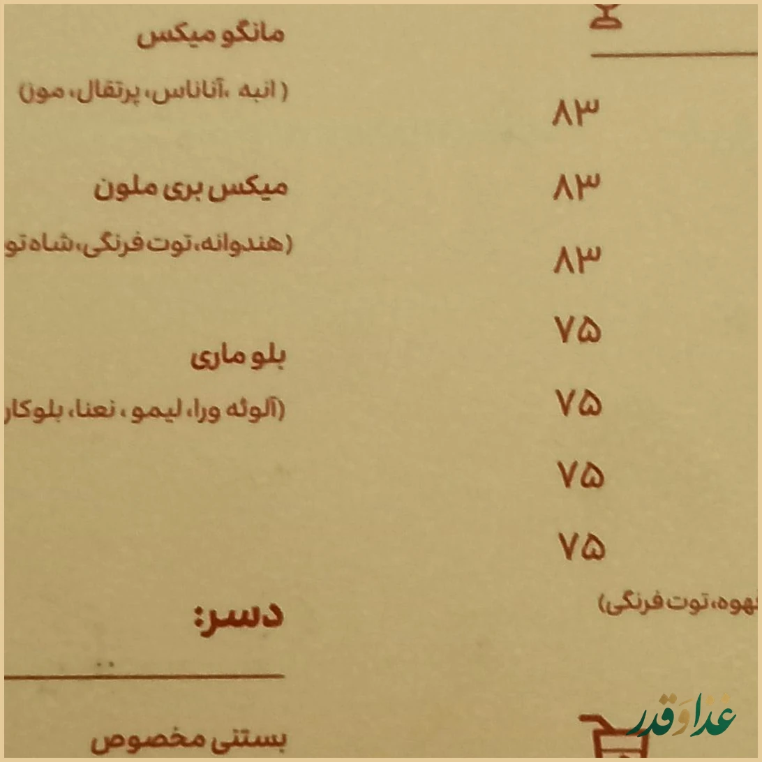 در نظرات اشاره شده که غذاها کمی «گرون» هستند، بنابراین بهتر است قبل از سفارش، منو و قیمتها را با دقت ببینید؛ با توجه به توصیف برخی مشتریها از کیفیت و فضای رستوران، میتوان گفت قیمتها کمی بالاتر از حد متوسط ارزیابی شده است.
