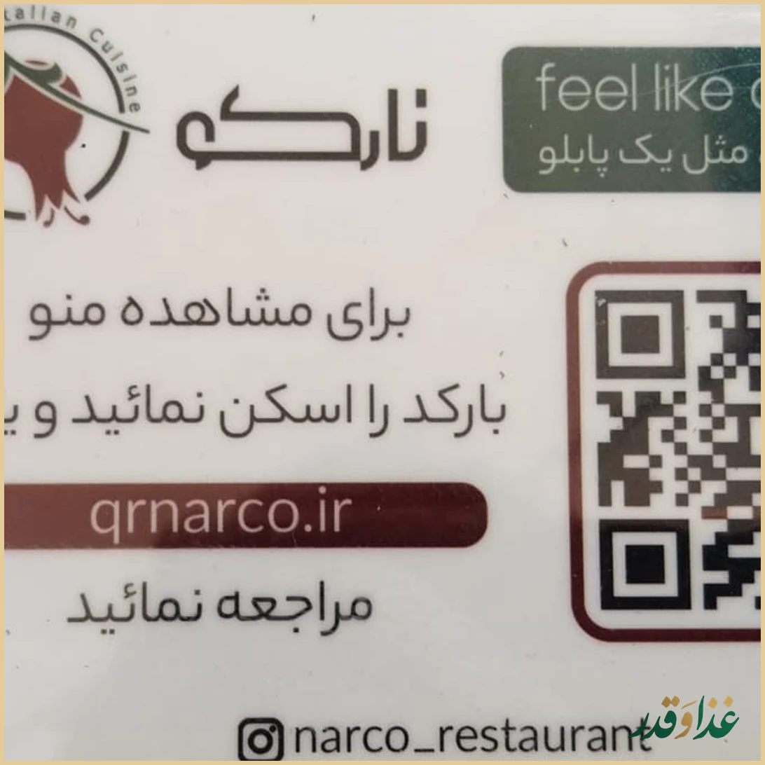 در دستهبندی رستوران، منوی ایرانی و ایتالیایی برای نارکو ذکر شده است که نشاندهنده تنوعی از غذاهای مختلف است؛ با این حال، در نظرات بیشتر به پیتزا، لازانیا و برگر اشاره شده و تمرکز نقدها هم روی کیفیت همین آیتمهاست.