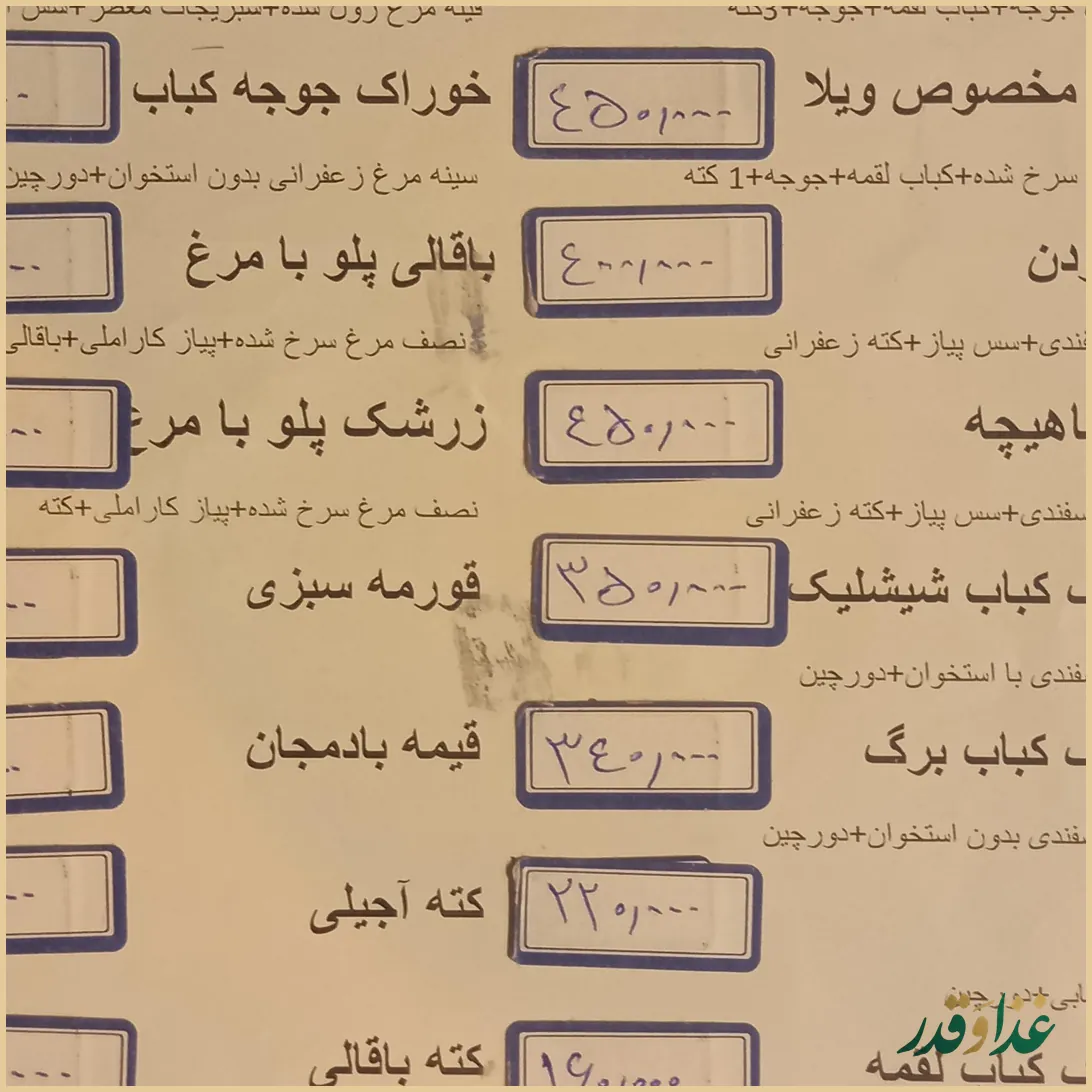تجربه مهمانان متفاوت است؛ برخی قیمت را مناسب نسبت به کیفیت دانستهاند و برخی آن را «نسبتاً گران» توصیف کردهاند. اگر با رستورانهای فضای باز و باغرستورانها مقایسه کنیم، سطح قیمت در حد متوسط رو به بالاست، اما برای افرادی که کیفیت و فضا برایشان مهم است، معمولاً قابلقبول ارزیابی شده است.