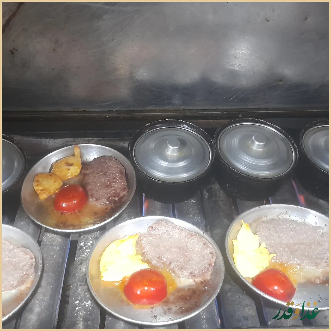 کباب تابه ای، بندری، سوسیس، تخم مرغ، املت و نیمرو