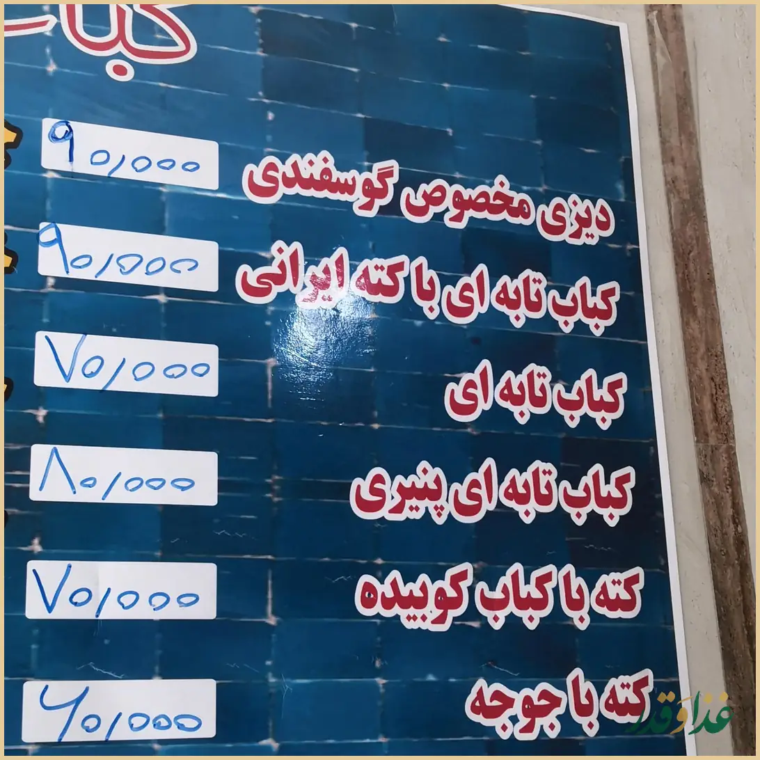 همانطور که از نام مجموعه مشخص است، کباب تابهای و انواع کبابها مهمترین و محبوبترین انتخاب این رستوران هستند و کاربران دقیقاً همین غذاها را به دیگران پیشنهاد کردهاند.