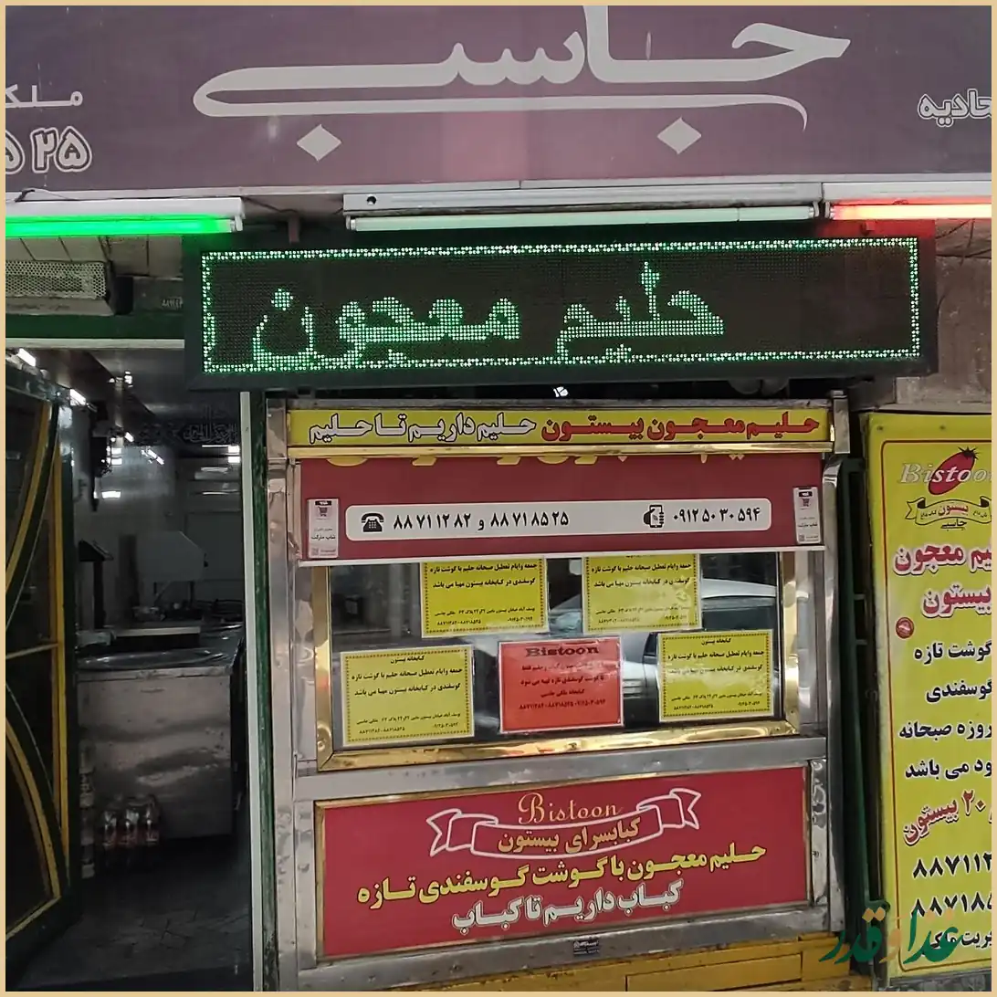 کباب سرای بیستون در محله یوسفآباد تهران، در خیابان دکتر فاطمی و خیابان بیستون قرار دارد و بیشتر بهخاطر کبابهای تازه و حلیم خوشطعمش شناخته میشود. فضای این کبابی بیشتر حالوهوای یک غذافروشی قدیمی و خودمانی را تداعی میکند تا یک رستوران مجلل، اما تمرکز اصلی اینجا روی کیفیت غذاست. بسیاری از مشتریها از حلیم بیستون بهعنوان یکی از بهترین تجربههایشان یاد میکنند و کباب کوبیدهی خوشمزهی آن هم طرفداران خودش را دارد. اگر در حوالی یوسفآباد هستید و هوس یک کباب خوب یا حلیم داغ و جاافتاده کردهاید، اینجا میتواند یکی از گزینههای جدی شما باشد.