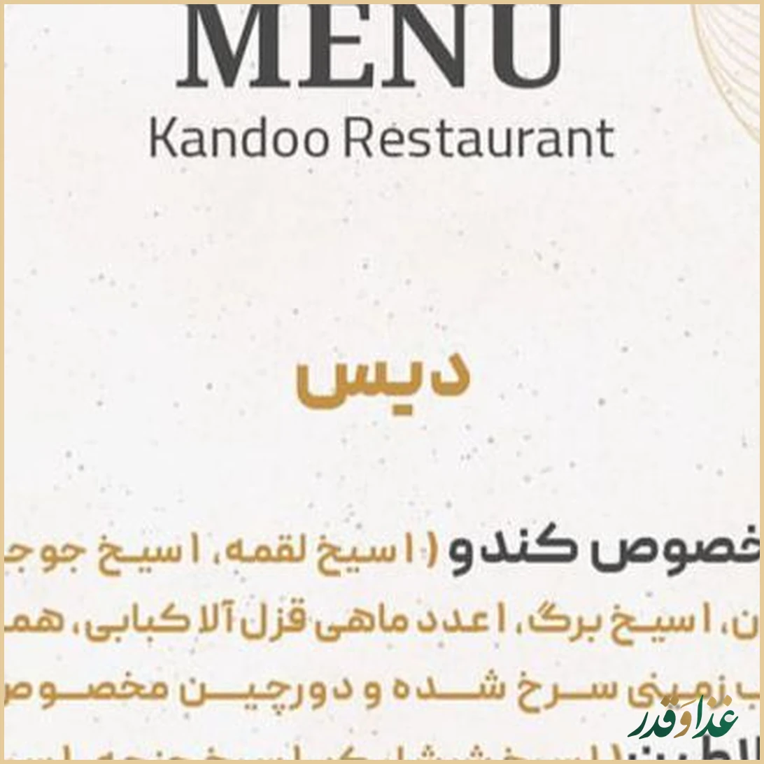 کندو کباب در دسته فستفود و رستوران ایرانی قرار دارد؛ بنابراین میتوانید انتظار انواع غذاهای سریع و کبابی ایرانی را داشته باشید که برای یک وعده ساده و بید麻 برای ناهار یا شام مناسب است.